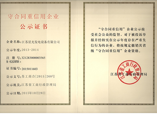 2013-2014年度守合同重信用企业证书(省级)