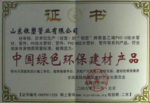 山东银塑管业有限公司位于泰山东麓、汶水河畔、交通便利的莱芜市凤城工业园,是一家以生产、研究及开发PVC、PE管材、管件节水灌溉系列产品的综合性塑料加工企业。 公司拥有目前国内最先进的PVC、PE管材管件生产线,专业的生产技术人员,年生产各种规格的PVC、PE管材管件两万多吨。公司生产的“银塑”牌管材、管件及系列节水产品多次被评为消费者满意产品,并通过国家、省、市三级检测。产品质量严格按照国家标准执行,顺利通过了ISO9001质量管理体系认证和ISO14001环境管理体系认证,积极推动了企业的规范性发展。 公司重视企业发展人才,先后从国内各大院校聘用专业管理人员和相关工程技术人员,为公司发展奠定了坚实的基础。技术设计人员能为农田灌溉,自来水工程及大小节水工程提供专业完整的技术服务,从而带动销售队伍不断扩大,...... [ 查看详情 ]