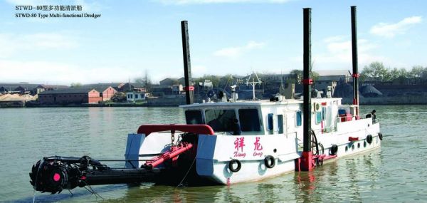 详细摘要: 我公司研制的STWD-80多功能清淤船是"十五"期间国家重大技术装备研制项目,通过部级鉴定,该船具备水炮冲刷、射流拖淤、斗轮挖泥三种清淤功能,适用于内河及潮水泥含量高的江河入海口、港道和堤岸,清淤效果显著。射、拖、挖装置共用一套动力系统,设备利用率高。
