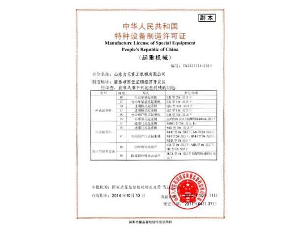 特种设备制造许可证