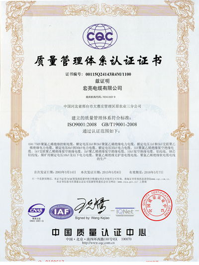 质量管理系统认证证书