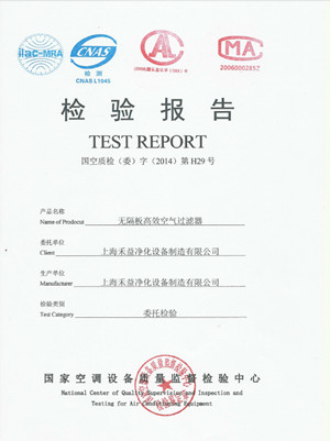 无隔板高效空气过滤器检验报告